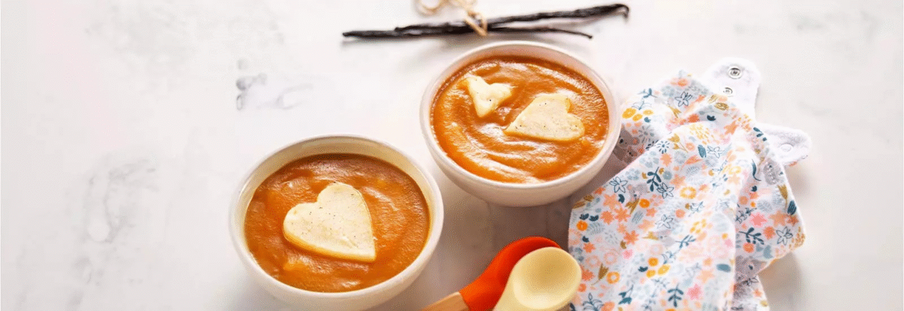 4 Mezcla el tarrito de "Manzana y albaricoque con anacardos" con la sémola, ajustando la cantidad de puré de fruta según el apetito de tu peque.
